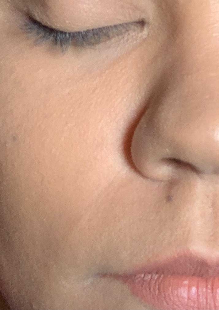 Nestas imagens que tirei com o celular, apliquei a mistura com a pele hidratada. Preparei a pele como sempre faço, que é pra não dar nenhuma diferença. Note que mesmo misturando o BB Cream, a base ba Mac ainda sim fica um pouco alaranjada na maçã do meu rosto, próximo ao nariz.