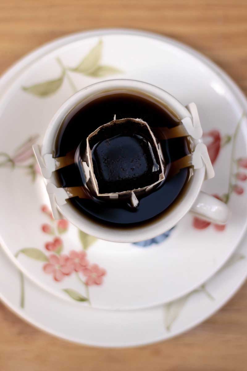 É importante seguir direitinho as instruções da embalagem, pois se você colocar toda água de uma vez, o pó do café que está na embalagem vai derramar dentro da xícara.